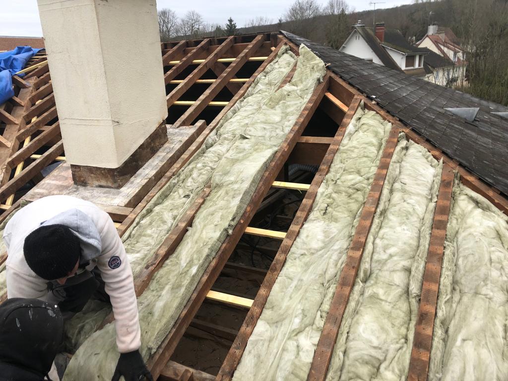 - Isolation laine de verre/de roche entre chevrons